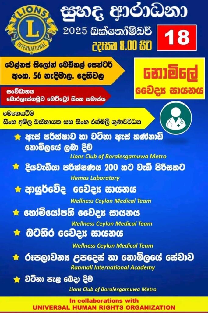 LHUMAN RIGHTS ORමෙම ව්යාපෘතියේ සංවිධානයසිංහ කේ. ඩී. ඉන්ද්රජිත්. සිංහ කාන්තා මල්ලිකාLIONS L INTERNATIONAL 306/D2